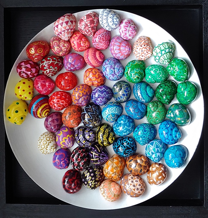 Handbemalt, jede ein Unikat. Motive frei gewählt.